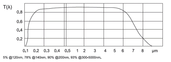 Magnesium Fluoride (MgF2 crystals) is used for optical elements where extreme ruggedness and durability is required. Its useful transmission range is 0.12 μm - 8.5 μm. Irradiation does not lead to color centers. It is a rugged, hard material which is resistant to thermal and mechanical shock and can be worked to the highest standards. MgF2 crystal is slightly birefringent and usually supplied with the optic axis cut perpendicular to the window faces.