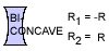 b. R is negative when the surface is concave