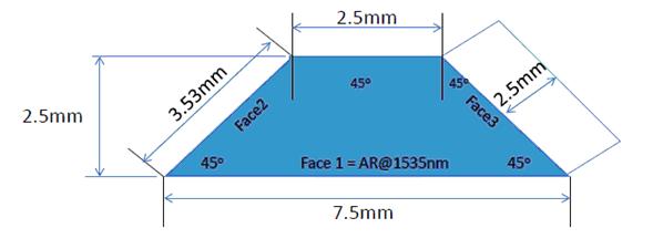 CLASER develops a stretched turning prism for small laser cavity application. It is very good to use this stretched turning prism to replace turning mirror, which can easily be mounted onto a resonant spring device or a simple DC motor to provide a mechanical Q-switching function in the laser cavity. Because our stretched turning prism has its advantage compare to turning mirror: